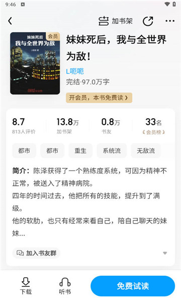 1、软件还提供听书的服务,当读者不想看的时候可以通过听的方式继续进行。