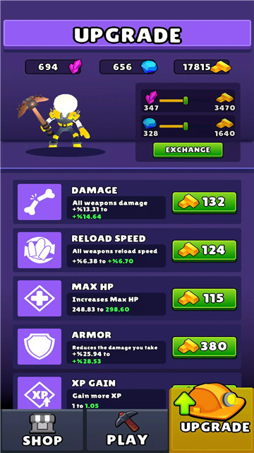 4、变成矿工,可以通过强化武器等级,获得更高的战斗力。