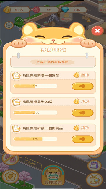 1、您将开设一间由仓鼠组成的购物中心,里面有各种各样的萌鼠客人。