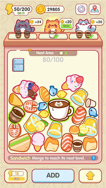 3、培养萌猫厨子,与同一只猫融合,获得更多烹饪技能。