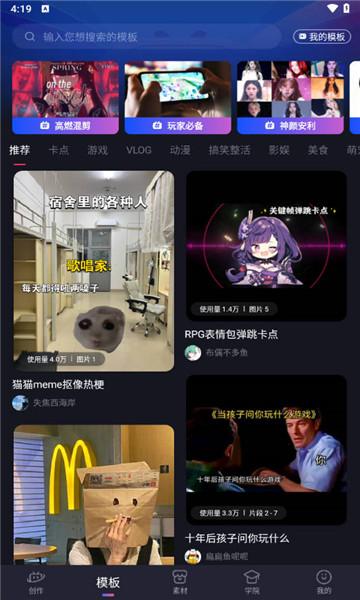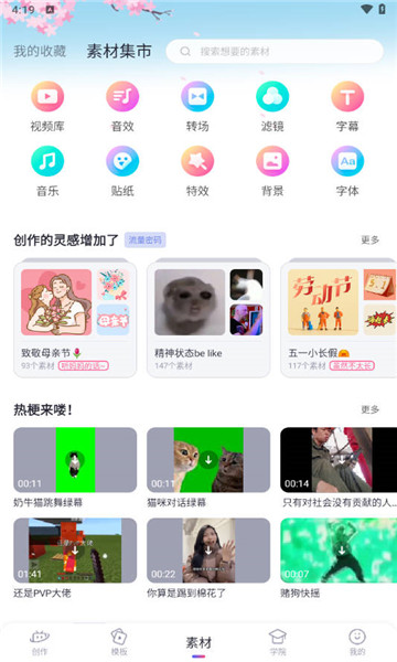 2、海量的免费视频素材库,用户可以根据自己的视频制作需求挑选合适的素材进行编辑。