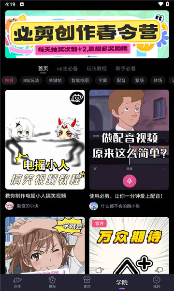 下载必剪剪辑是一款专为视频制作而设计的专业级视频剪辑软件,它为用户带来了集录制与剪辑为一体的全方位视频创作解决方案,成为广大视频创作者的首选工具。用户可以便捷地制作出具有专业感的视频内容,软件内建的海量素材库进一步降低了视频制作的难度,全面满足了用户在视频编辑方面的各种需求。