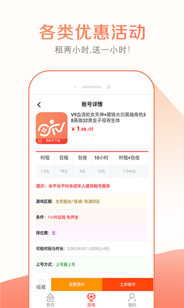 2、平台特设的游戏专区允许用户直接浏览,使用户能够迅速找到并获取所需租用的游戏账号信息。