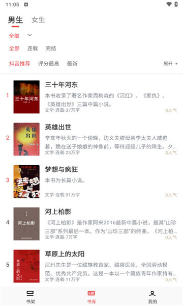 3、设有男性和女性读者偏好的两大阅读板块,进一步细分为数十个具体类别,帮助读者更精确地找到自己感兴趣的领域。
