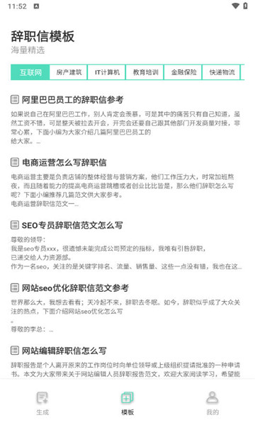 2、软件内的模板设计各有侧重,有的模板专注于表达对公司的感激与赞赏,而有的则更侧重于清晰阐述离职的具体原因。