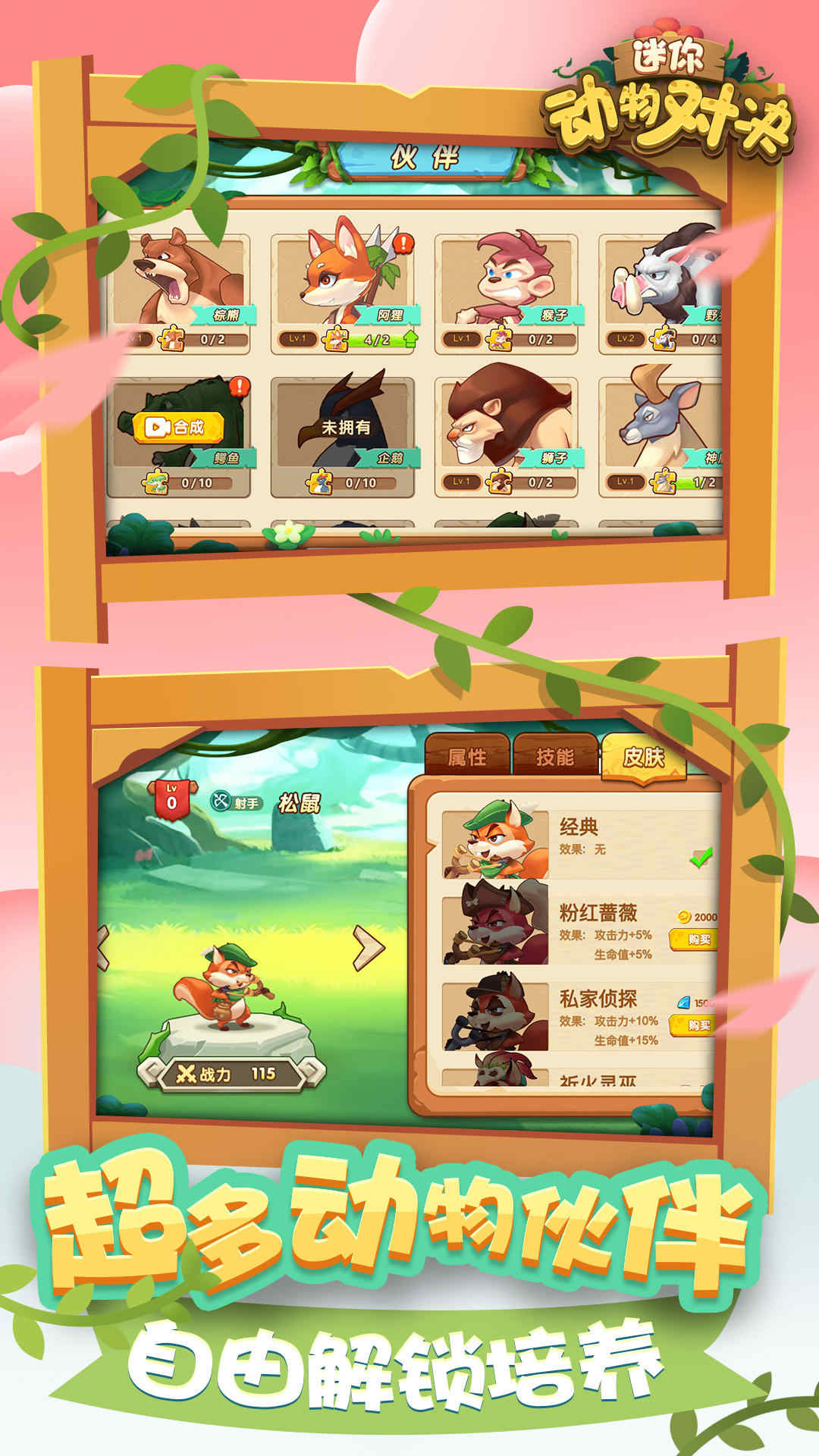 4、每个动物角色都配备有独特的技能,在关键时刻释放可以一招定乾坤,增添了游戏变数与深度。
