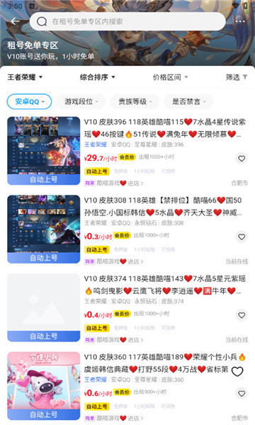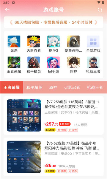 1、汇集了多种游戏类型的账号,包括当前流行游戏的稀有账号,方便用户快速寻找并获取他们心仪的游戏账号。