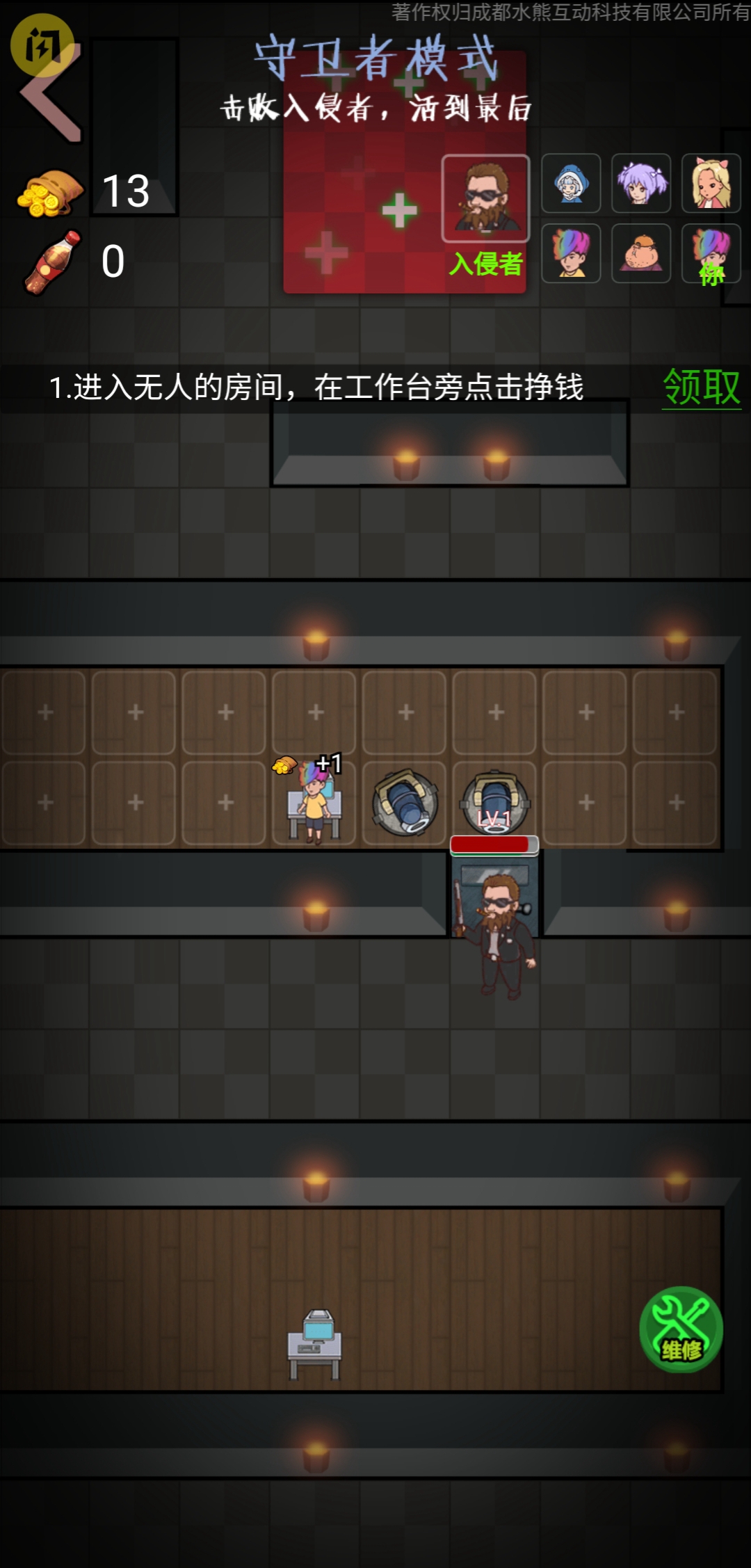 2、玩家可以精心的搜集装备,策略搭配强化自身的防御体,选择最强大的武器,定制不败的堡垒。