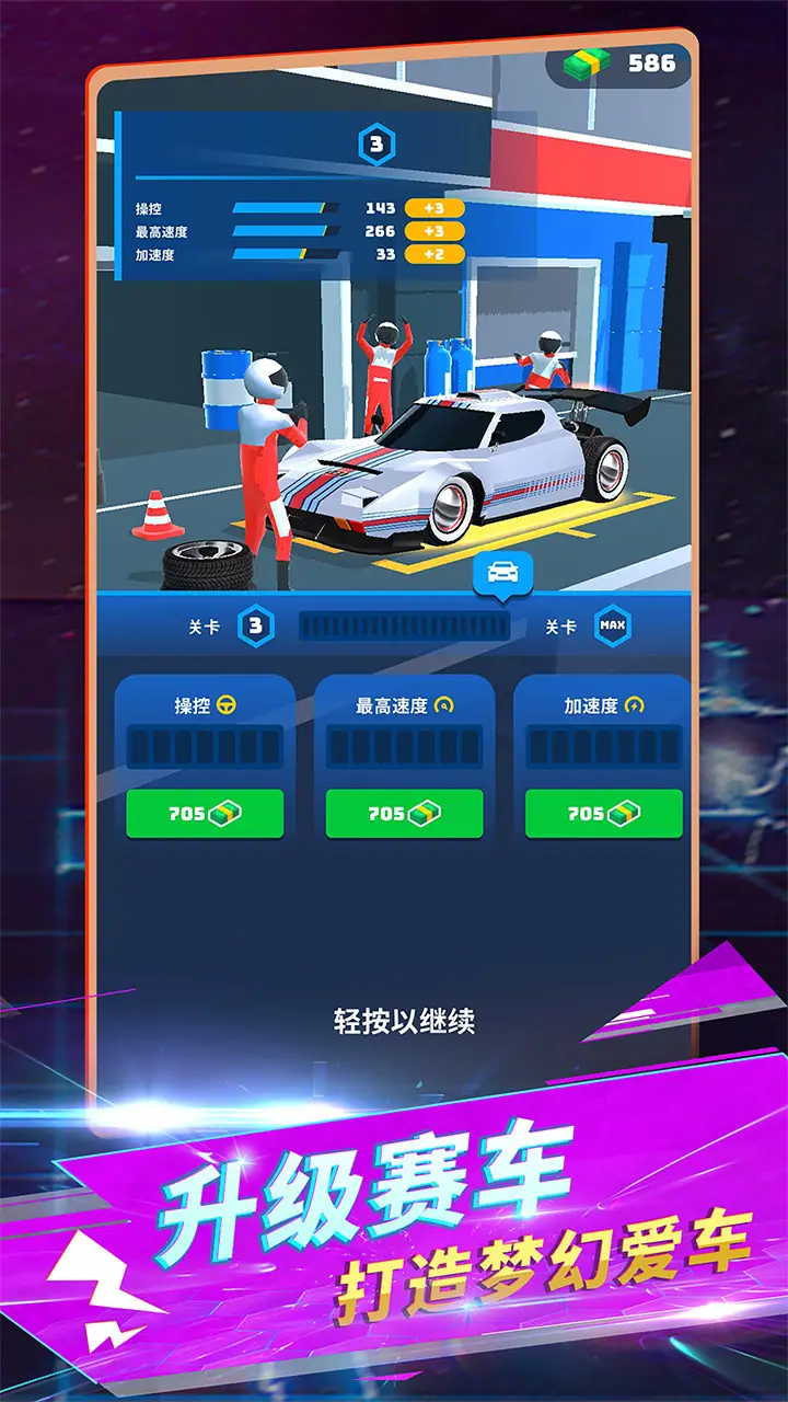 2、在这项极限赛车挑战中,策略与智慧十分关键,玩家可以在这里展现自己的冷静头脑,在疯狂的速度中寻找致胜之道。