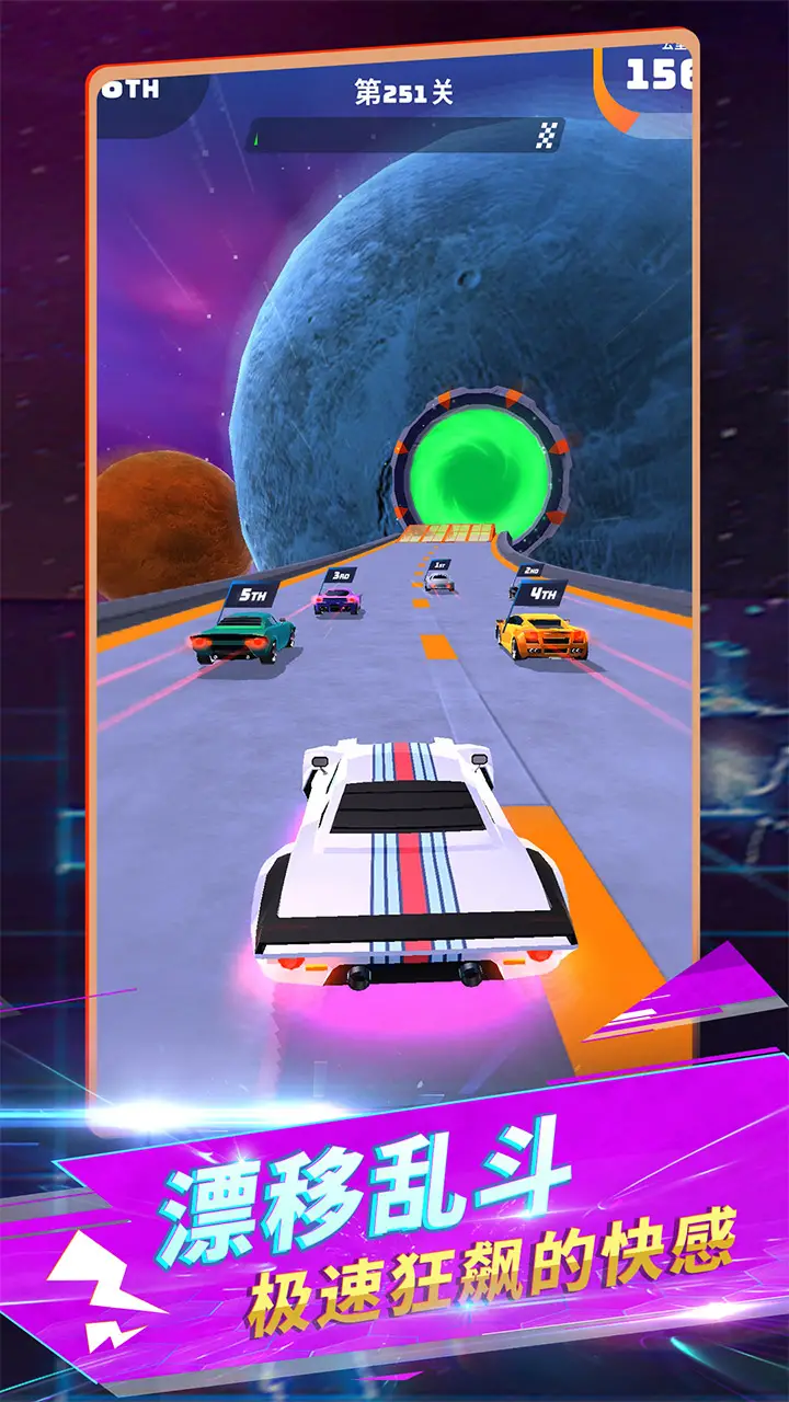 下载1、赛道狭窄,考验着玩家穿越重重障碍的能力,赛道下方是无尽深渊,在高速行驶下的每一次转弯都是玩家对勇气的极限挑战。
