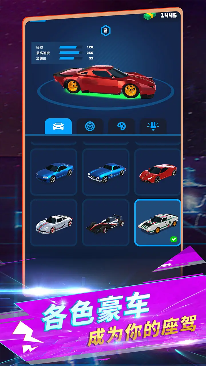 1、玩家需要掌握精确的驾驶技巧,细腻的转向控制与恰到好处的刹车时机,确保在高速赛道上的稳定表现。