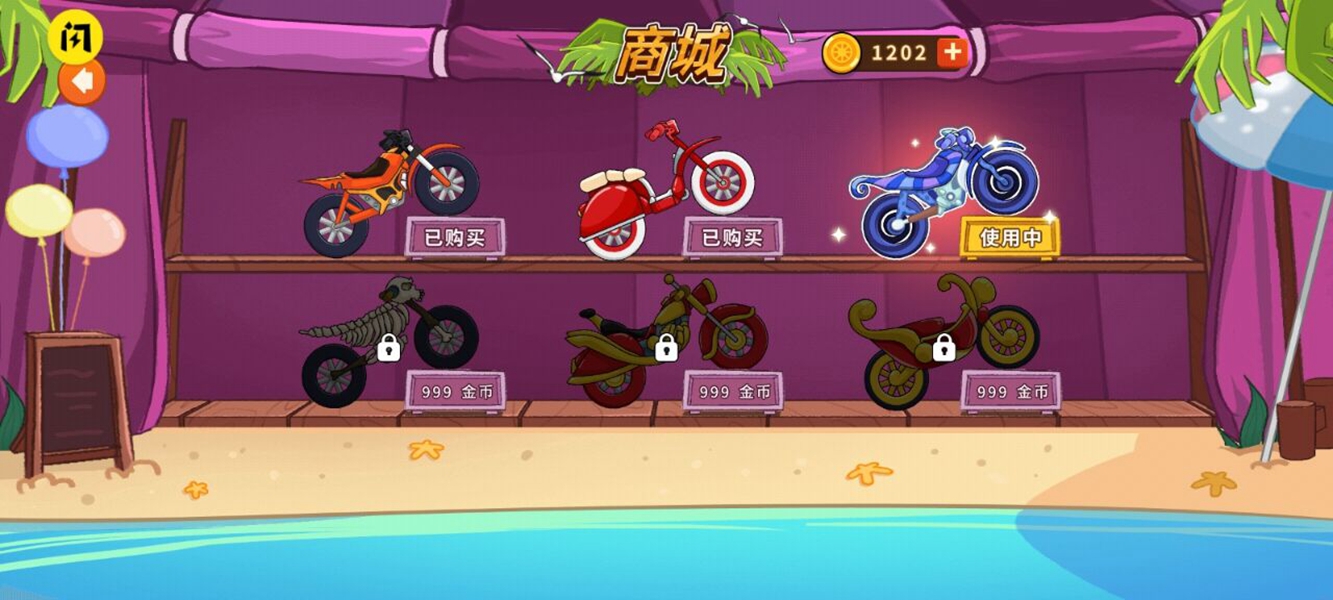 2、在挑战旅途中,收集金币成为关键任务,它们可以帮助解锁各式精美服饰和摩托车外观,让玩家在速度与激情中展现出个性的风采。