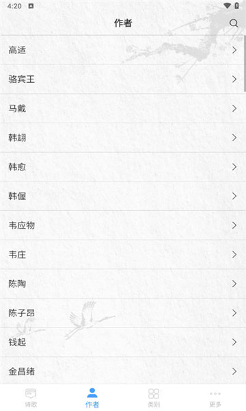1、配备了先进的搜索功能,允许用户通过作者名、诗题或其他关键词进行搜索,轻松定位到自己感兴趣的古诗词。
