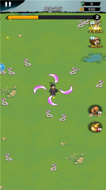1、让玩家沉浸其中,不会觉得无聊,这是一款旋转的割草冒险游戏。
