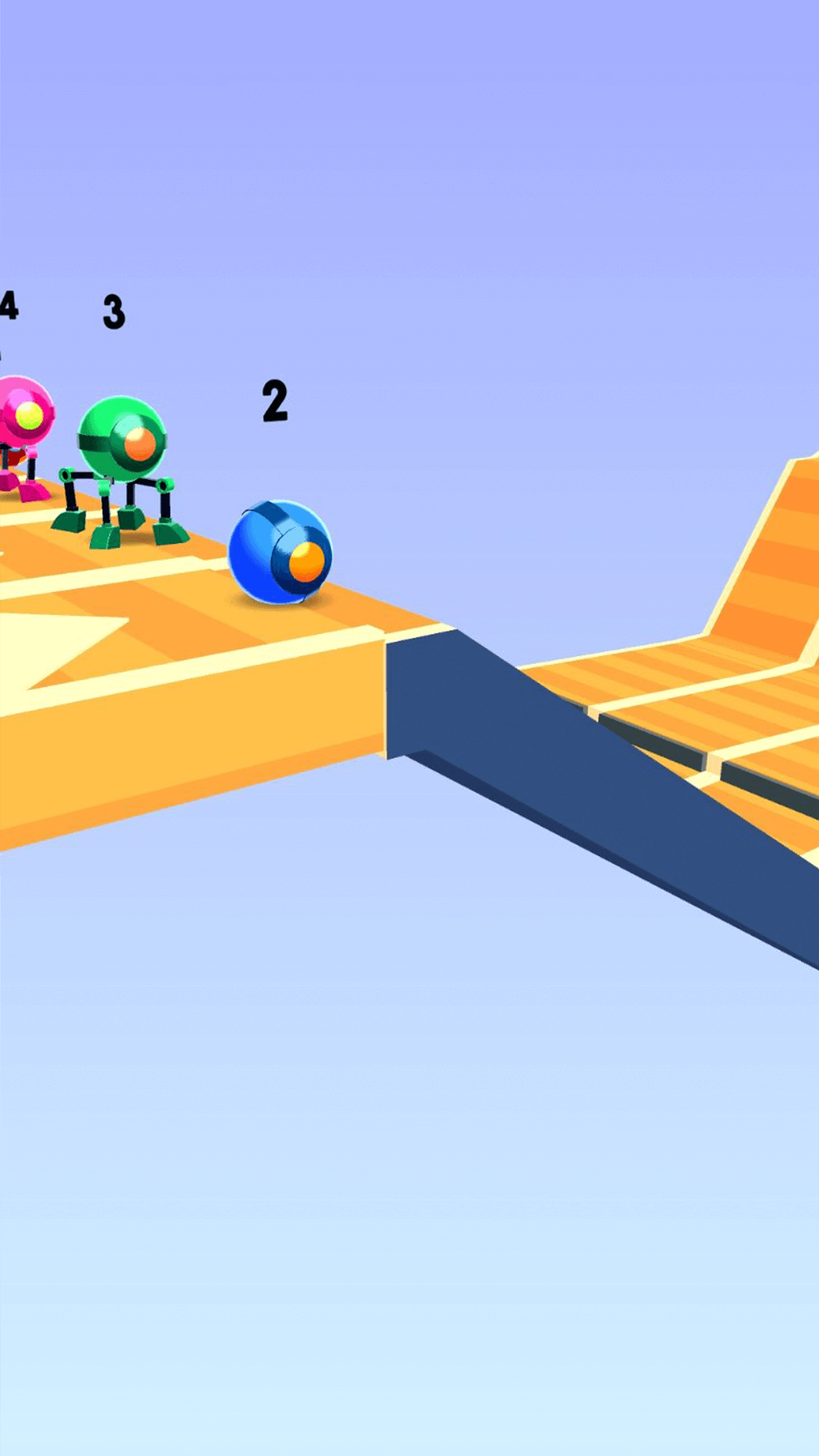 2、玩法操作简单的点击,蕴含策略与技巧,玩家需要掌握节奏,指挥自己的机器人灵活滚动、稳健行走,迈向胜利的终点。