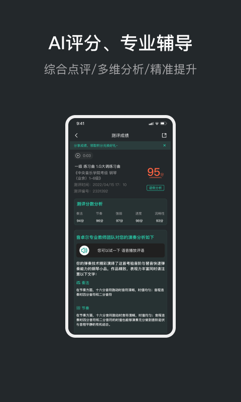 1. 技术领先:采用前沿的音乐识别与分析技术,提供精准的反馈,确保练习质量,提升学习效率。