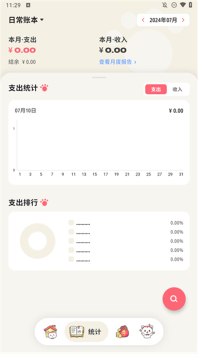 3、进入“统计”板块,一目了然的支出趋势图助你理清消费动向;
