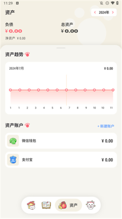 2、根据您的喜好,您可以选择不同种类的账户,创建您自己的记账空间。