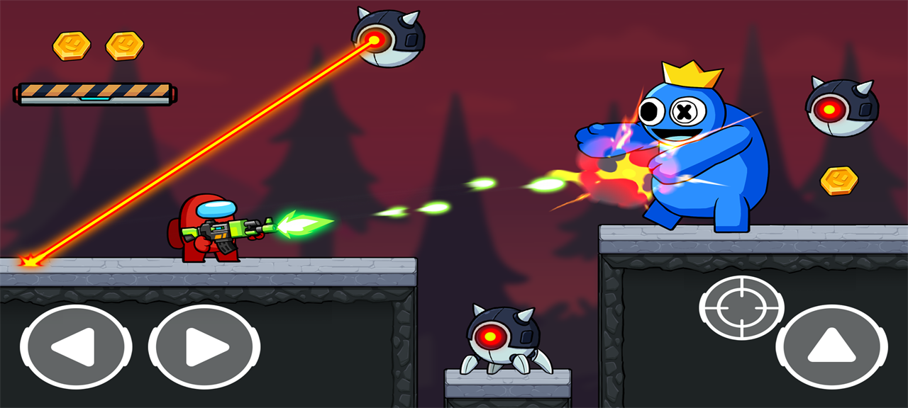 3、多变的战场环境考验着玩家的生存能力,为玩家每一次闯关增添了新鲜,沿途的道具与金币的收集为玩家的生存挑战增添了深度。