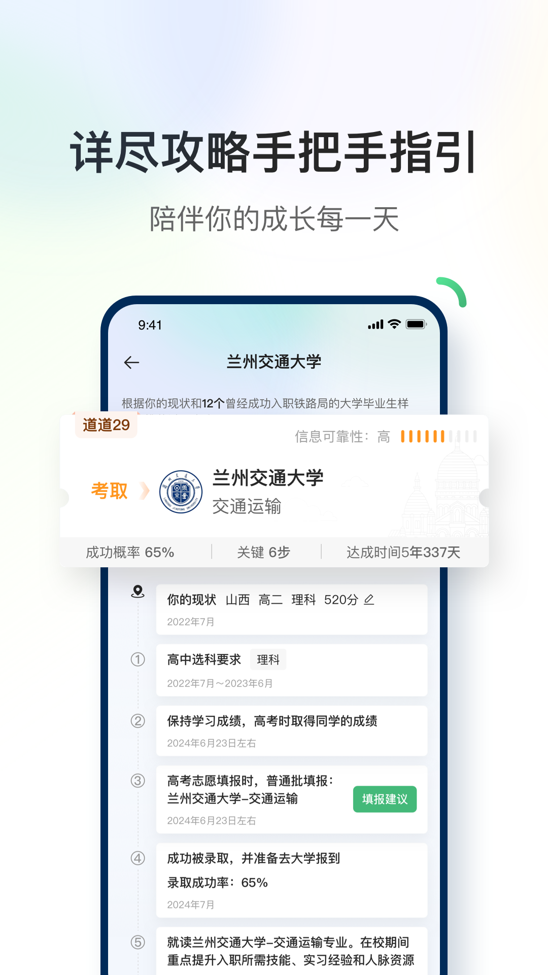 下载1. 全面规划系统:覆盖学习、职业、升学、就业等全阶段,全方位规划,满足不同用户需求。