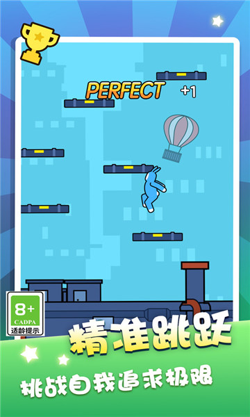 2、在这里玩家可以学习到不同的跳跃技巧,利用你精湛的技术顺利完成每一关的挑战。