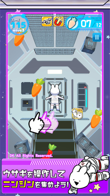 3、可怜的兔桑为了得到关键的红萝卜,只有在宇宙中才能飞到天上去。