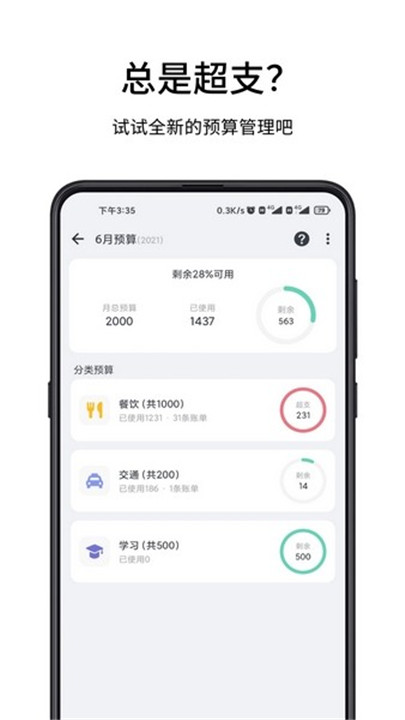 3、对每月的账单可以进行预算,还能用图表进行统计分析;