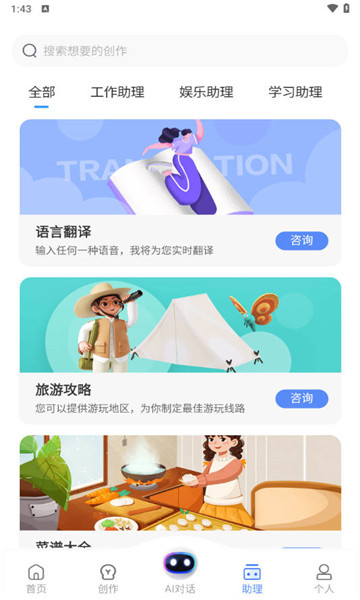 1、不仅能够辅助用户创作文章,还能进行艺术画作的创作,提供多样化的创意工具,帮助用户轻松解决各种创作难题。