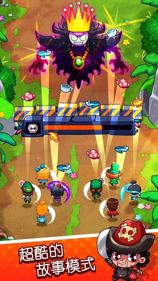 3、拥有着许多各具特色的英雄,每位英雄都携带着独特的技能与视觉的特效,加上多种不同的强化技能,丰富了战斗的策略,保持了游戏的新鲜感。