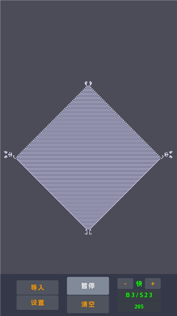 若目前的方格内已有活的细胞,则其周边8格内有2至3个活的细胞,并在下一轮中维持原状。