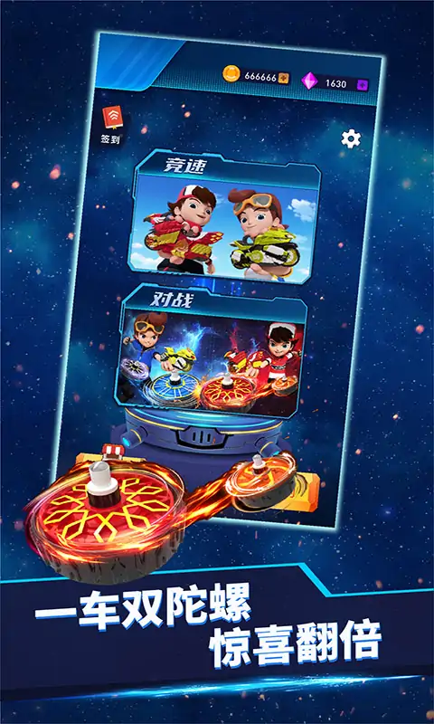 1、玩家可以进行选择多样化功能强大的陀螺,利用独特的火力配置,策略的布局,体验到智力与速度的挑战。