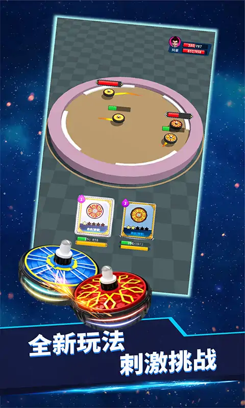 3、玩家可以与智能的挑战,体验着刺激的对战,提升自身的技巧,不断的解锁陀螺的技能。