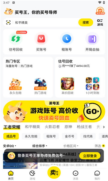2、支持用户在线实时回收自己的游戏账号,方便用户将闲置账号变现。