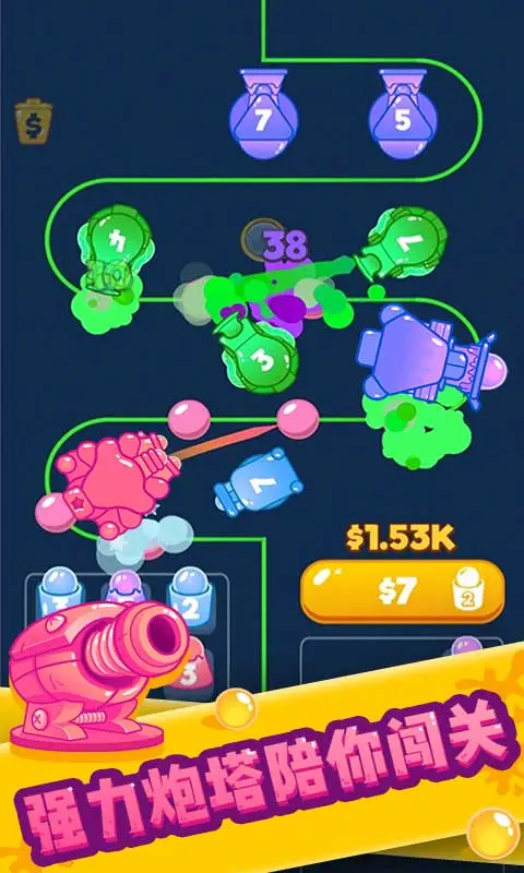 4、玩家可以通过合成升级炮塔,解锁更强大的火力,应对愈发强悍的敌人,考验着玩家的策略与适应能力。