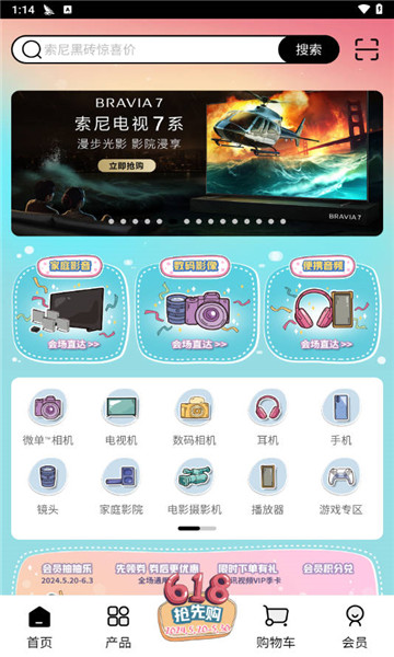 1、汇集了索尼全系商品,作为官方推出的线上购物平台,全面满足用户的购物需求。