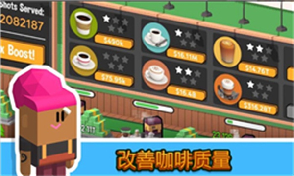 玩家们也要在这里做生意,顾客越多,工作越多,他们就能研发出新的咖啡,喝上一杯,就能在全球范围内升级,而且还能雇佣更多的员工,赚取更多的小费。