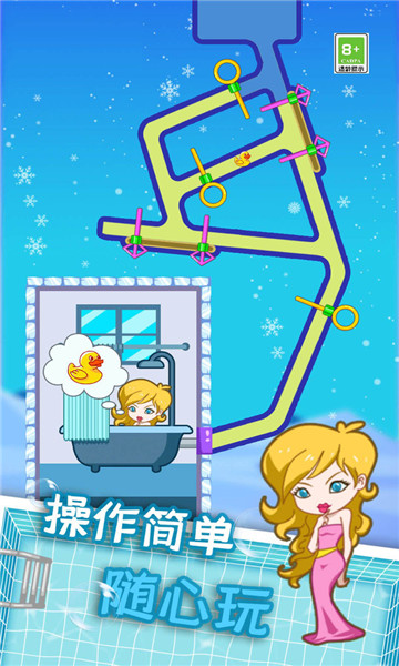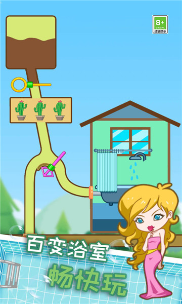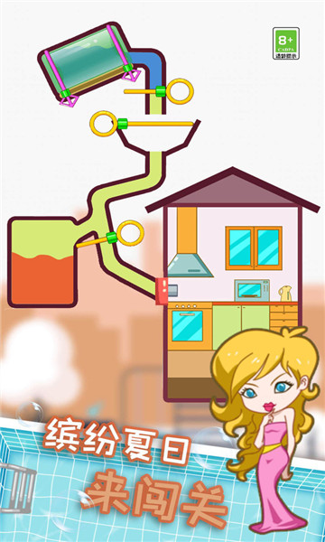 1、独特的插销闯关内容,发挥你的智慧帮助小姐姐成功玩到干净的水。