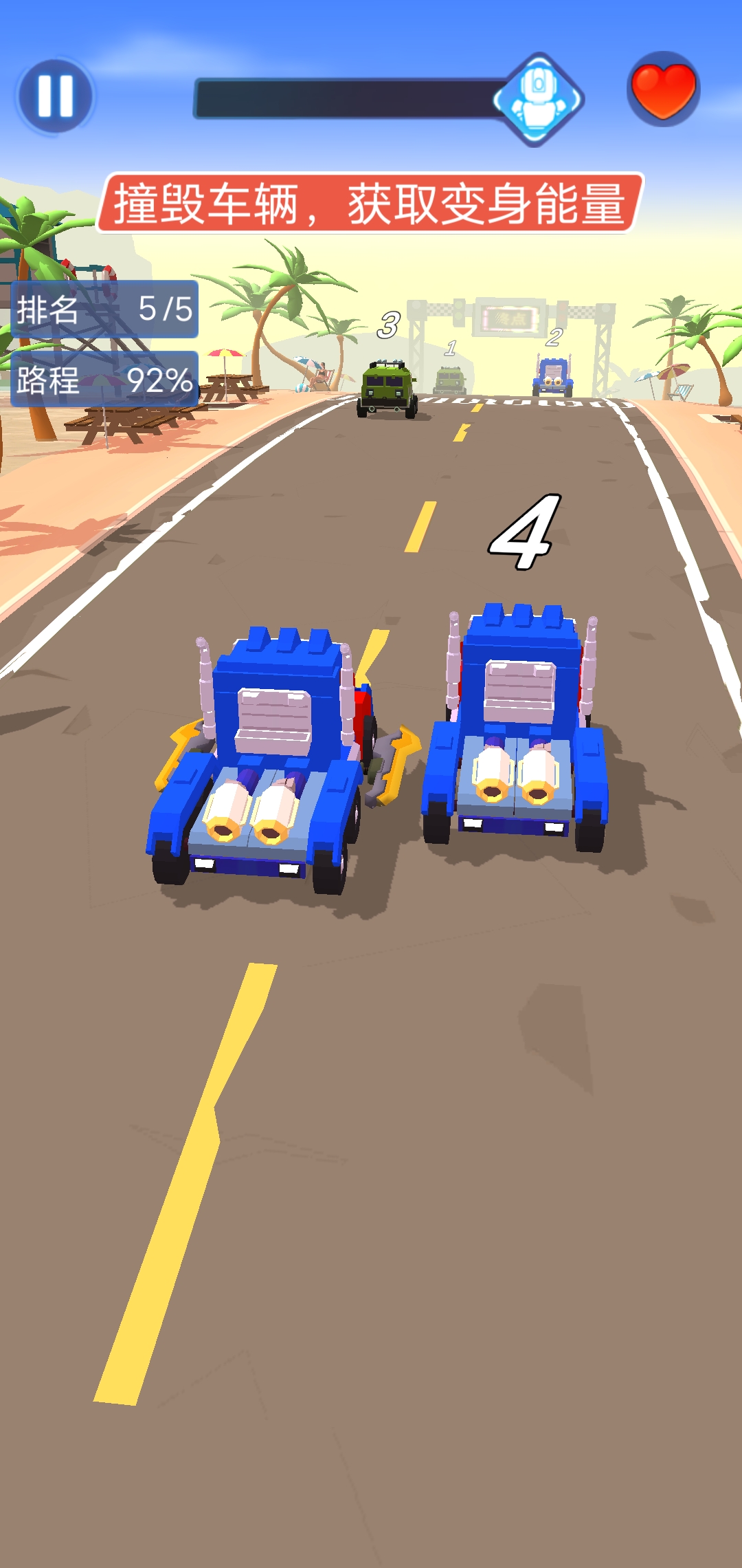 3、在繁忙的高速公路中玩家可以与其他的汽车人展开激烈的对决,每场竞赛都将是对速度与智慧的终极考验。