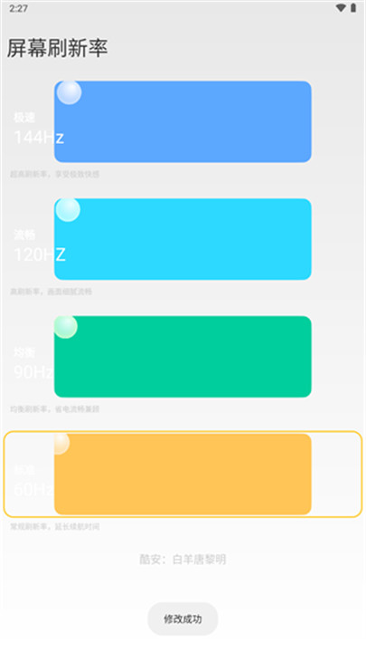 2.对于追求屏幕流畅度和电池续航平衡的用户来说,此软件提供了极大的便利,满足个性化需求。