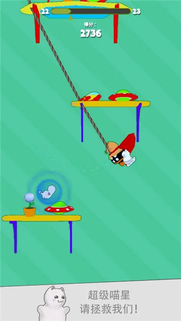 4、超级猫咪踏上了解救被外星人拐走的旅途,开启全新的关卡及新的玩法。