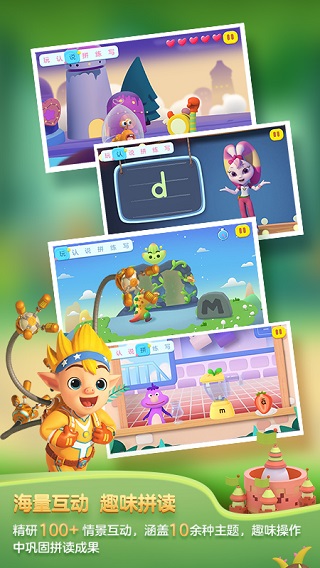 3.融入儿歌、故事、动画、游戏等元素,使拼音学习变得生动有趣,提升孩子学习兴趣。