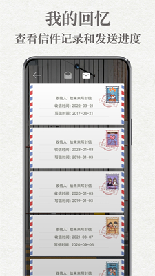 下载深受文艺青年喜爱的生活记录类软件,通过最原始的书信方式,向未来的自己记录自己当下的想法,支持语音、文字、图片等形式记录,当未来的你打开从以前收到的信,那会是一次奇妙的惊喜。