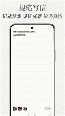 1.随时随地提笔就能写信,支持多种记录方式,包括图片、文字、语音等