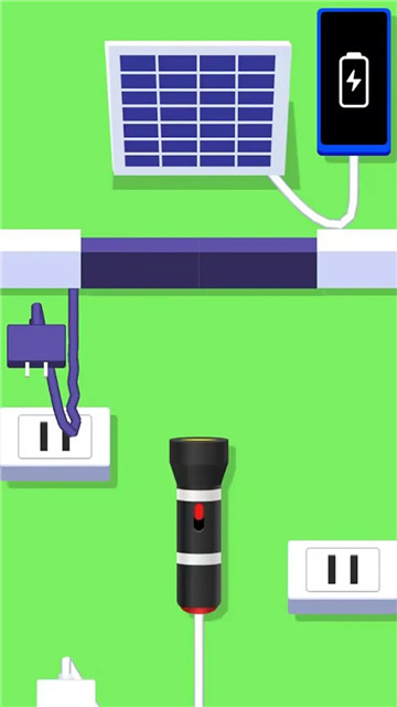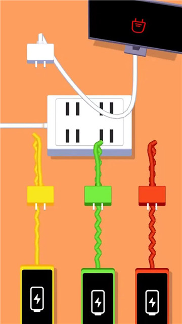 1、需要把连接的充电口插到对应的插口上,每一关的插口数目都是不一样的。