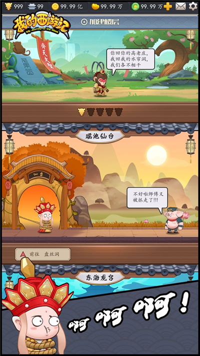 下载我的西游记是一款休闲放置类游戏,游戏采用场景楼层建造和卡牌战斗养成的结合模式,并且含有放置挂机系统,放置休闲收集养成,挂机战斗。通过建造场景咱先西天取经故事的剧情线,结合策略性的战斗玩法,给玩家带来极致爽快感。