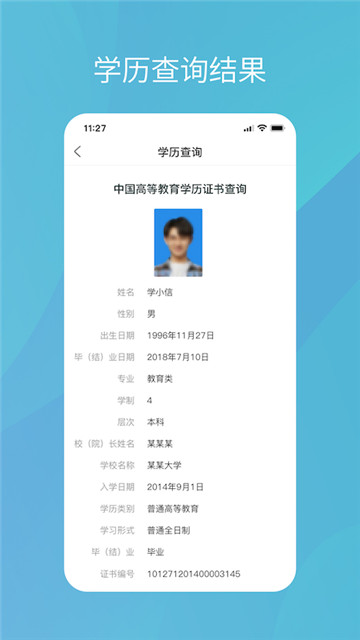 1、学生学历查询,通过网络对学生的学籍、学历等进行在线检查,保证其真实、有效。