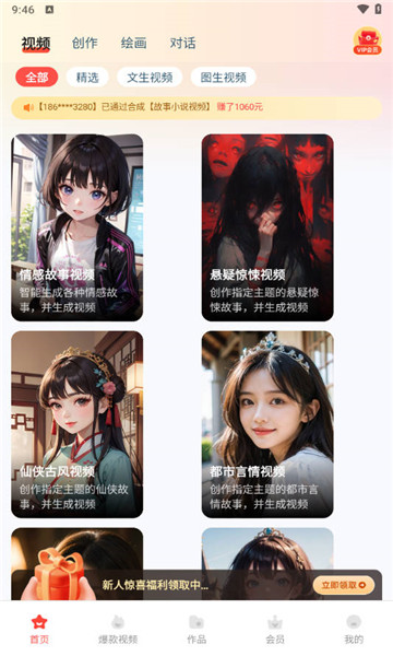 4、只需输入关键词,软件即可生成原创视频,享受丰富多样的服务,满足不同的创作需求。