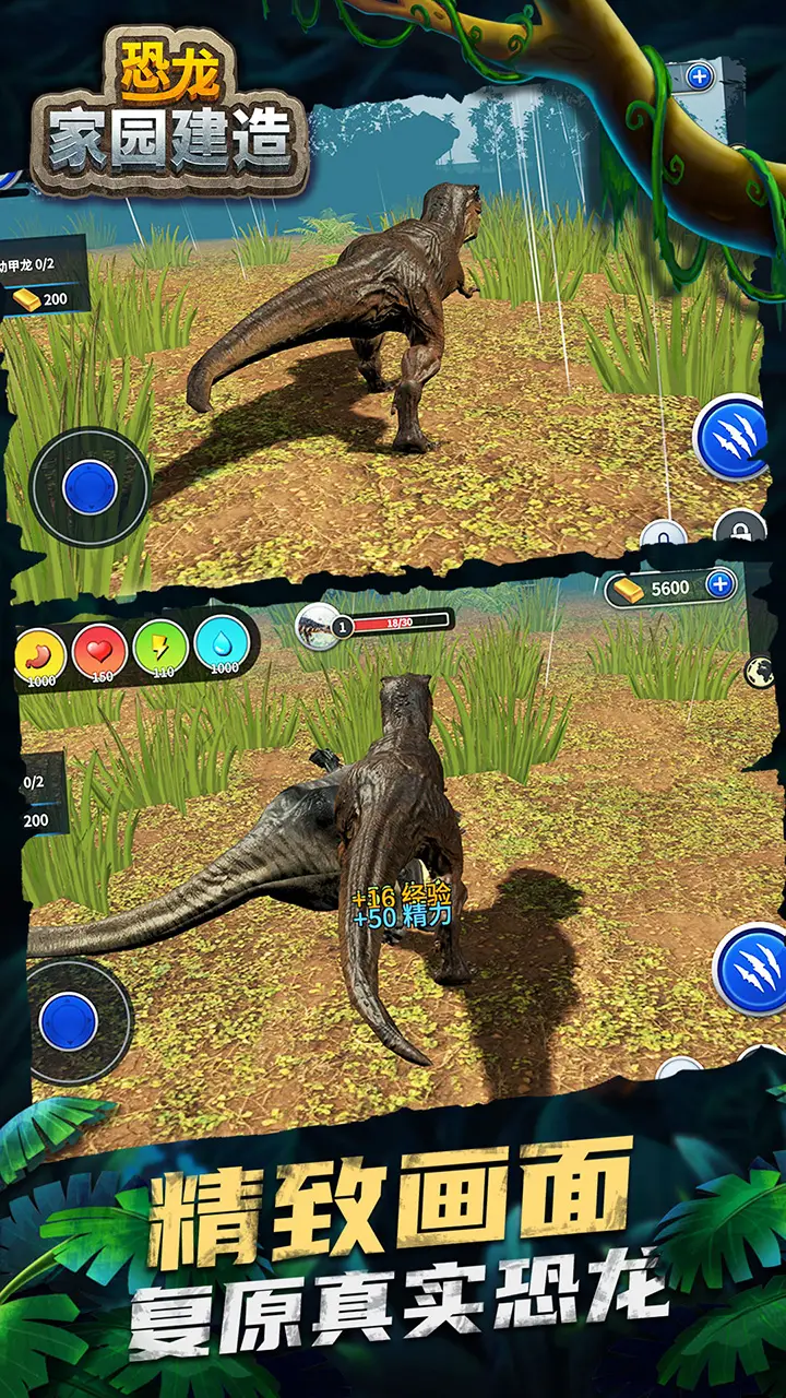 1、采用顶尖的3D技术,为玩家打造出逼真细腻的画面,通过生存的挑战累积资源,塑造自己的恐龙乐园。