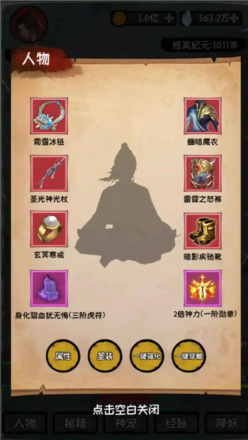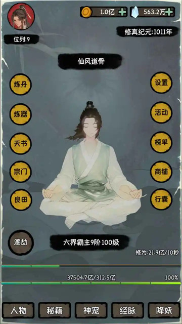 4、可自由切换成修士人物,进行个人打扮,开启各种修炼资源。