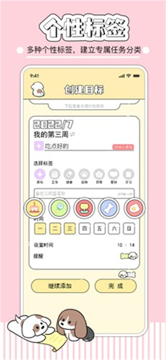 2.随时随地添加不同的个性标签,随时打卡完成目标
